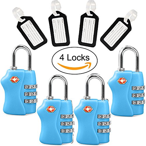 TSA Travel Locks Security 3 Digit Combination Suitcase Luggage Bag Code Lock Padlock 4 Pack Locks