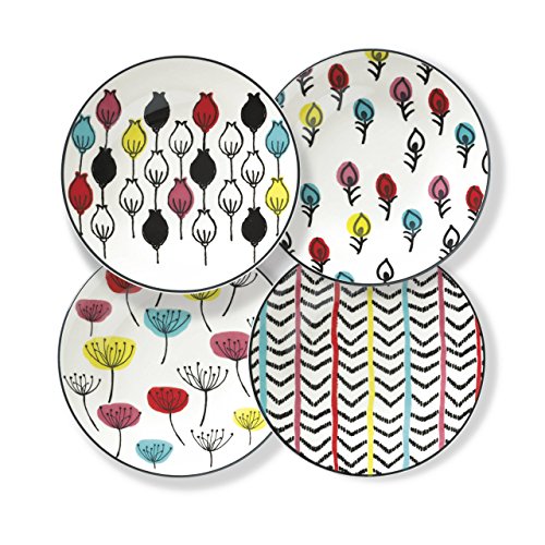 Studio : Lenox Publisher : Lenox Binding : Kitchen Product Description Designed with simple sophistication and clean lines, the around the table floral 4-Piece dessert plate set is destined to create good times with friends and family. Crafted of creamy white stoneware and decorated with chalkboard black and bright Red, Yellow, Pink, and turquoise Tulip buds, delicate branches, floral motif, and geometric pattern, this contemporary dinnerware is inviting and fun. Perfect for a casual get together and also makes a wonderful gift. 0