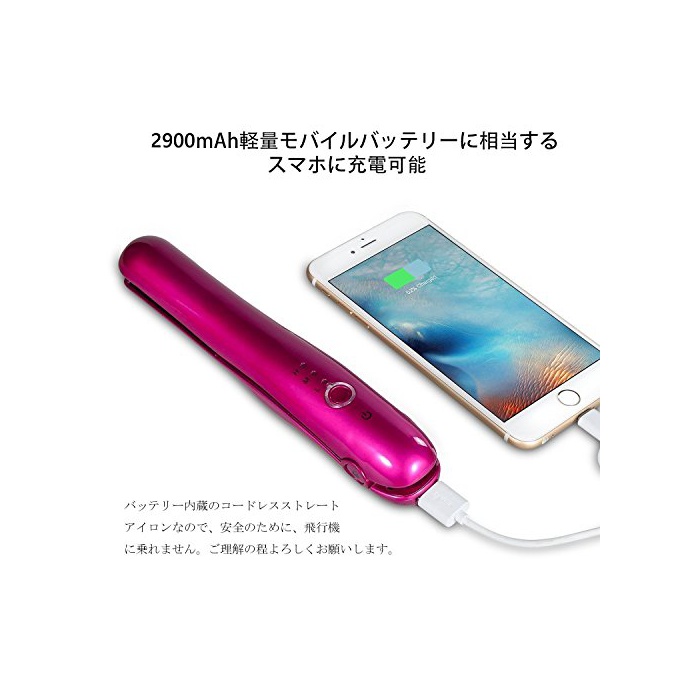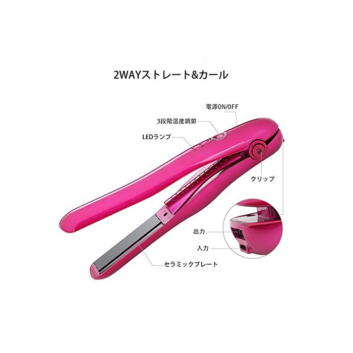 원본상품명: NexGadget ヘアアイロン コドレスストレト 2900mAhモバイルバッテリ USB充電式 高170℃ (ピンク)