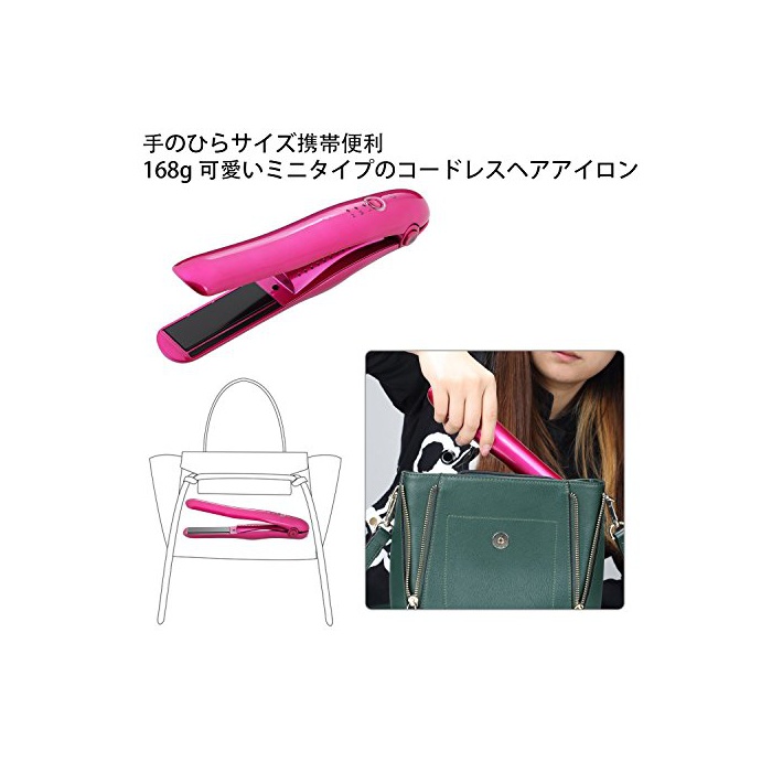 NexGadget 헤어아이런(고데기) 무선 스트레이트 2900mAh모바일 배터리 USB충전식 고온170℃ (핑크)