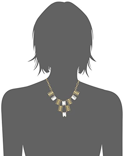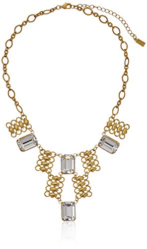 Gold-dipped necklace featuring bib of openwork rectangular pendants and faceted emerald-cut Swarovski crystals