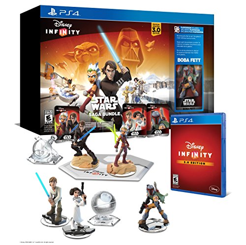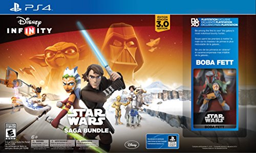 Experience the Star Wars Saga with the Sony exclusive Disney Infinity 3.0 Edition: Star Wars Saga Bundle, featuring the Disney Infinity 3.0 Edition Starter Pack and 2 exclusive early releases, including the Rise Against the Empire Play Set and Boba Fett Figure."