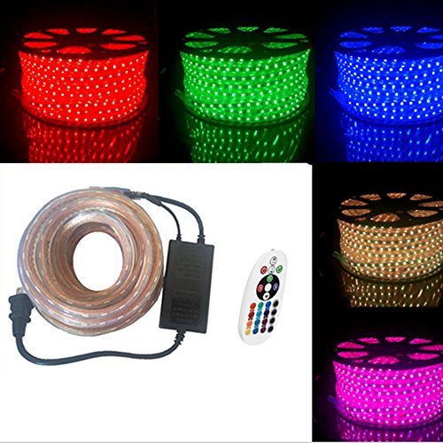 RGB LED Strip Lights Kit, COLINKIND Wateproof Outdoor LED Rope Lights 16.4ft Flexible 5050 SMD 110V Party Wedding LED String Lights with Plug and Remote Controller for Xmas Festival Decor DIY LED Ligh
