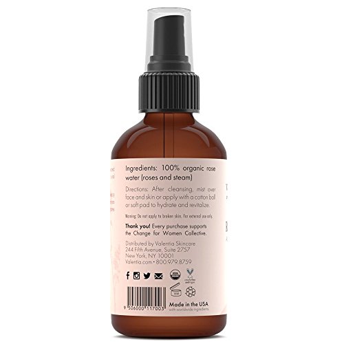 - Nourish Your Skin With the Highest Quality Available. Valentia Rose Water is USDA Certified Organic, 100% pure, synthetic-free, unrefined, and never tested on animals. Our rose water is all-natural, and distilled to perfection using organic roses and steam by local farmers in the beautiful, rural mountains of Aksu Isparta, Turkey, so you can feel rejuvenated by this intoxicatingly beautiful all-purpose elixir each day.