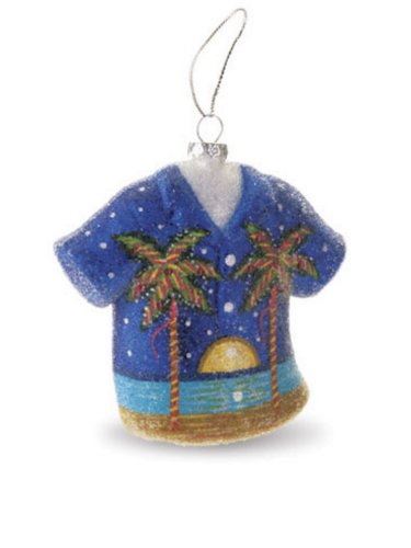 "Moonlight Palms" Aloha Shirt Glass Ornament