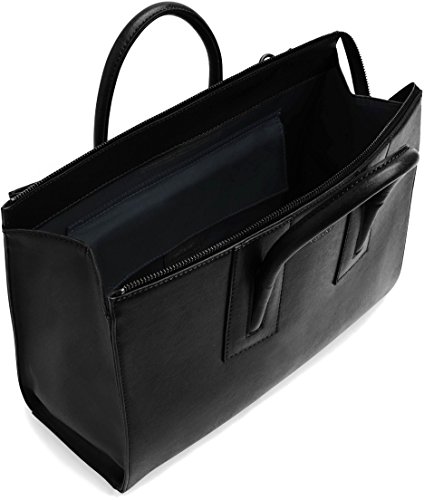 Satchel with adjustable and removable crossbody strap. Top zipper closure. Patch pocket along back with hidden magnetic closure. INTERIOR: padded Ipad sleeve, 2 slit pocket, smartphone pocket, logo embossed Vintage tag. 100% recycled nylon lining.