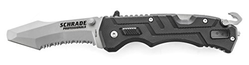 -. Title : Schrade SCH911 First Response Rescue Folding Knife Fully Serrated Belt Hook Blade, Stainless Steel