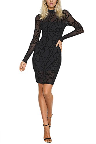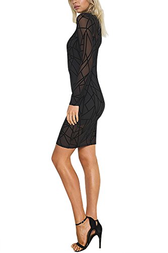 Title : YOINS Women Midi Dress Long Sleeves Bodycon Floral Sheer-through Black Black US2
