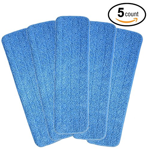 Five replacement mop heads measuring 16.5" x 5.25" for home and commercial use Re-Up fiber technology traps and lifts dirt, grime and even allergens