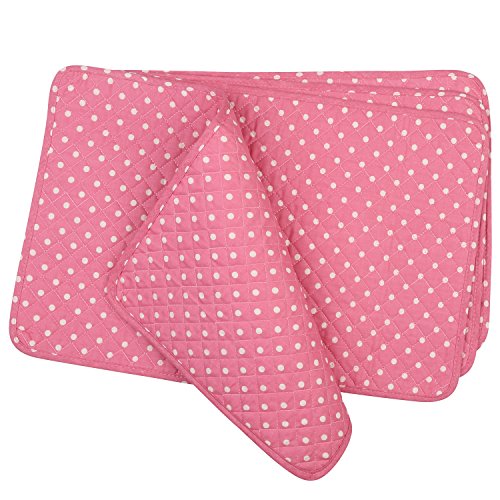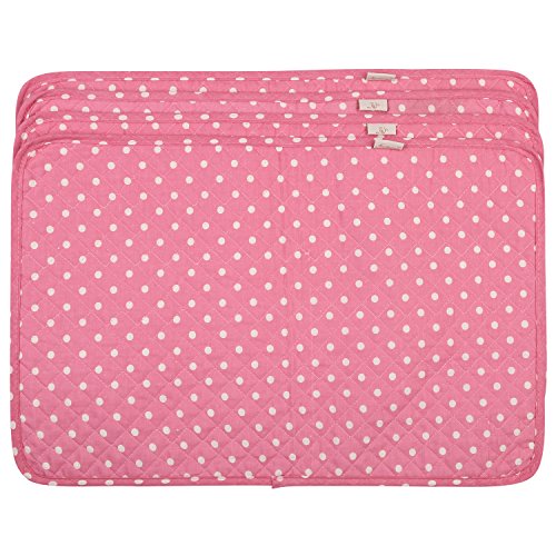 Neoviva Floral Fabric Quilted Placemats, Set of 4 Sheets, Polka Dots Pink
