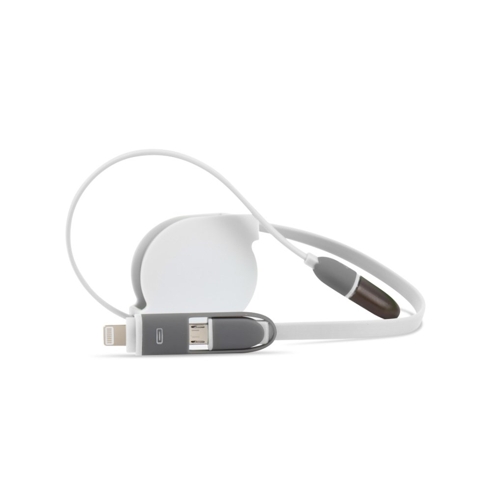 The retractable design makes this cable ideal for stowing in a purse or a bag. Simply pull both ends of the cable and slowly release and the cable will store neatly in it's housing without getting tangled.