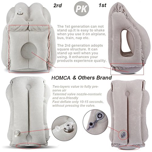 Travel Pillow, Portable Head Neck Rest Inflatable Pillow from HOMCA, Design for Airplanes, Cars, Buses, Trains, Office Napping, Camping - Includes FREE Eye mask (Gray)