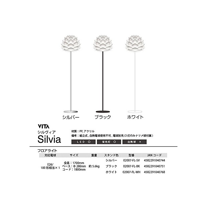 원본상품명: フロアライト 1 - シルヴィア - Silvia フロア(ホワイトベス) 【電球別】 VITA デンマク ELUX(エルックス) 02007-FL-WH 02007-FL-WH