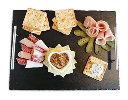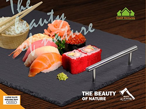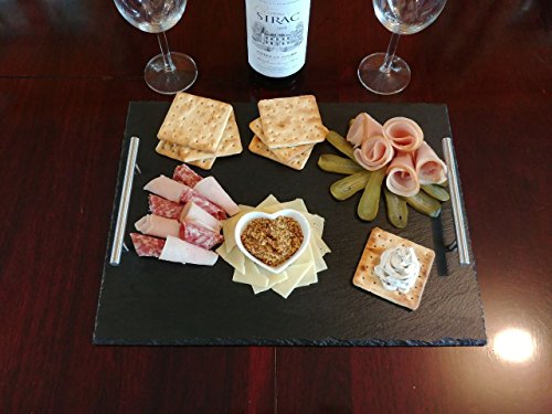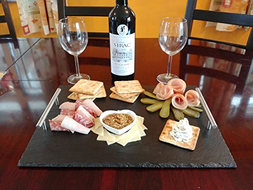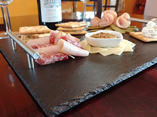 Large Thick rectangular Slate Serving Tray Platter Coated with Organic Oil with Stainless Steel Handles