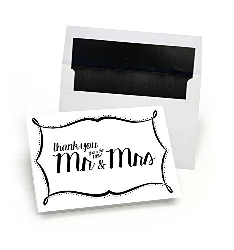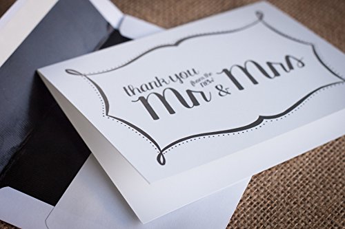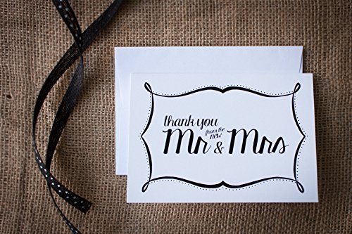 Wedding Thank You Cards (From The New Mr & Mrs) - 10 Cards + White Black-Lined Envelopes - By Palmer Street Press