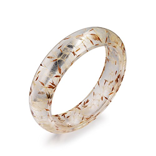 -. Title : Real Dandelion Resin Bracelet Faceted Gold Leaf Flakes Bracelet Bangle Bracelet Natural Jewelry