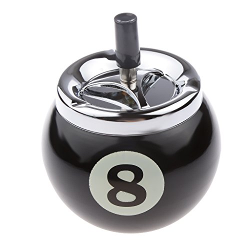 -. Feature : A attractive and practical ashtray, especially for billiard fans / Adds a bit of retro style to your living room, office, bars, game rooms and any place you want. / With a push button and spin lid. Simply pressing push-button, lid spins the ashes to the bottom. / Durable aluminum materials. 4 different type optional. / Good internal and external painting for easy clean.