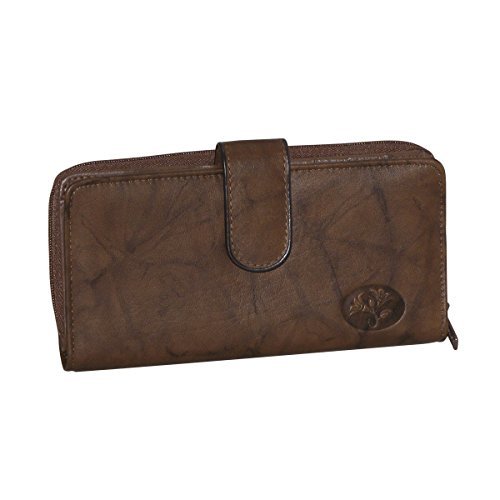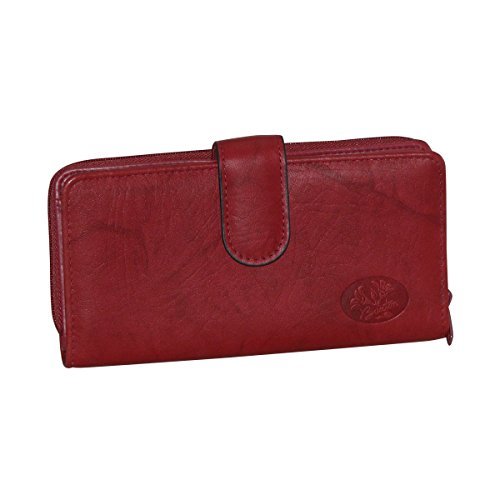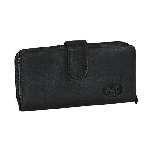 Zip around compartment with two open pockets, center zip pocket, three additional credit card slots and currency/receipt pockets