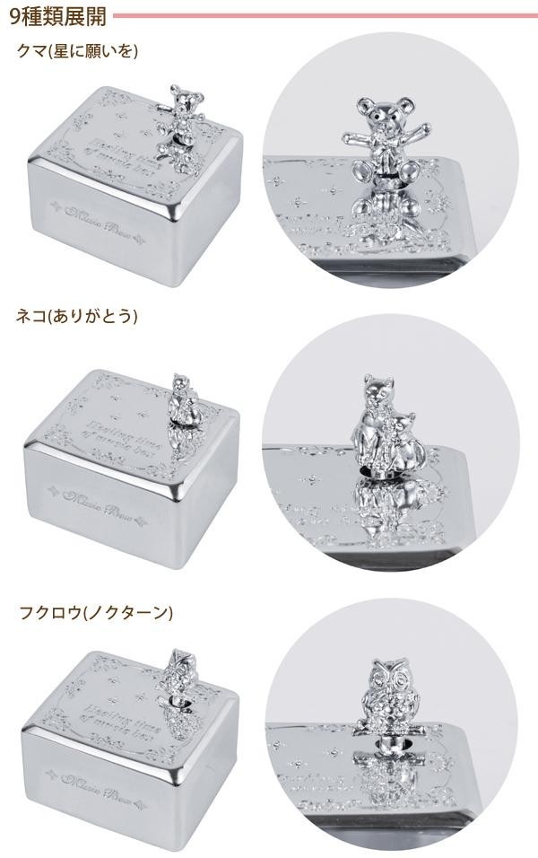 トップのモチーフが巻きネジになって回転するチャーミングなオルゴールです。