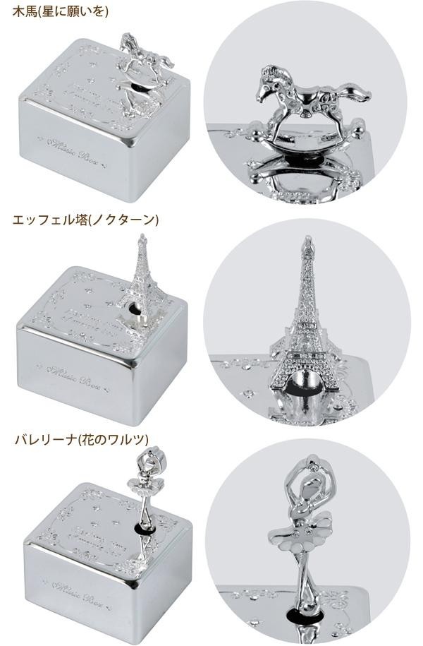 トップのモチーフが巻きネジになって回転するチャーミングなオルゴールです。 製造国:中国 素材・材質:亜鉛合金ラインストーン 商品サイズ:クマ・ネコ・フクロウ・クローバー・ローズ・雪の結晶・木馬:5.5×5×5.5cm、エッフェル塔:5.5×5×6.9cm、バレリーナ:5.5×5×7.1cm ※メーカー直送品