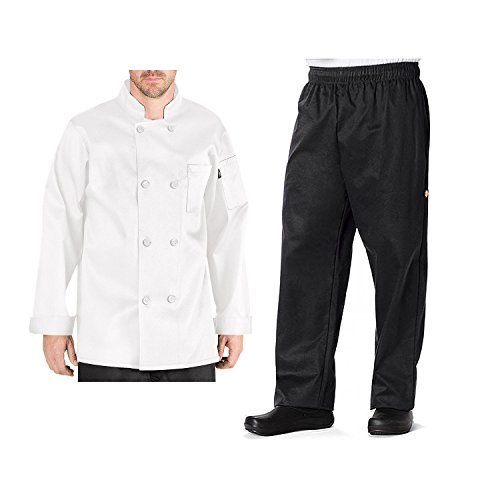 Dickies Men's Chef Wear Set Baggy Cargo Chef Pant & 8-Button Long Sleeve Coat (Medium, White Coat+Black Pant)