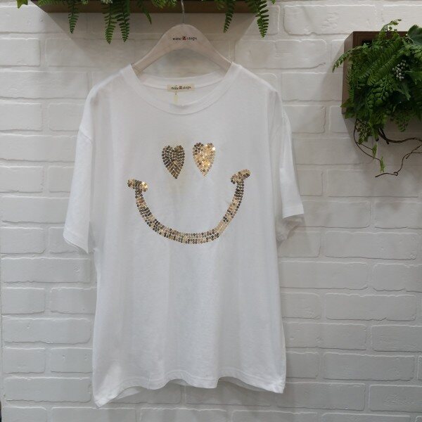 기본티에 스마일 스팽글이 들어가 포인트를 주는 티예요