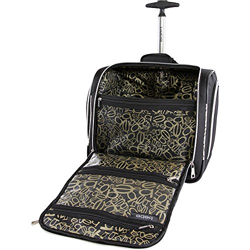 -. Binding : Apparel -. Brand : bebe -. Department : unisex-adult -. Feature : U-Shaped main compartment allows easy access to all your travel items / Internal mesh divider and 2 see-through compartments are perfect for toiletries and make-up / 6 external pockets for quick access to smaller items and to keep your organized / Adjustable push button trolley handle for easy travel / 15.5x8.5x15 -. Label : Fila Lage -- Dropship -. Manufacturer : Fila Lage -- Dropship -. PackageQuantity : 1 -. ProductGroup : Apparel -. ProductTypeName : LAGE -. Publisher : Fila Lage -- Dropship -. Studio : Fila Lage -- Dropship -. Title : BEBE Tiana-Wheeled Under the Seat Carry on Bag