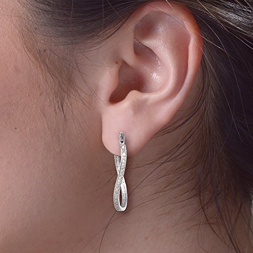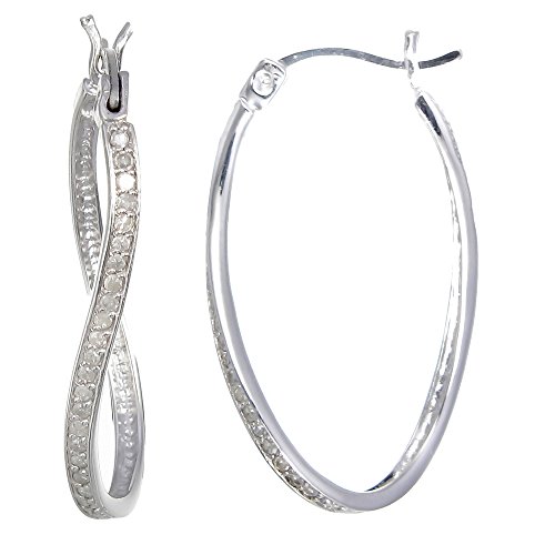 -. Title : 1/4 CT Diamond Hoop Earrings Sterling Silver Twist