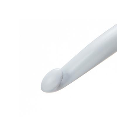 | 針先は、すべりの良い樹脂を使っています。軽いので、手に負担がかかりにくいです。針先から糸がはずれにくく、目を拾ったり、糸を引き抜きやすい針先形状です。手になじむソフトな素材と立体的なカーブで作られたグリップは、自然と指先にフィットし、持ちやすく疲れにくい設計になっています。 |