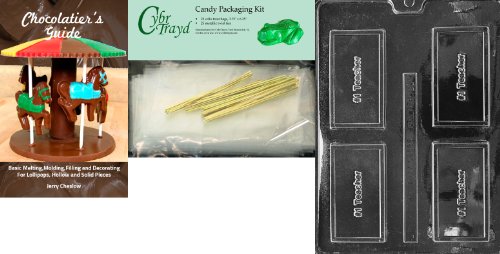 Cybrtrayd No.1 Teacher Business Card Chocolate Candy Mold with Chocolatier's Bundle, Includes 25 Cello Bags and 25 Gold Twist Ties