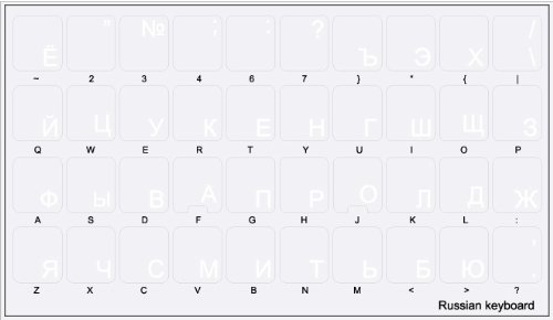 RUSSIAN CYRILLIC KEYBOARD STICKER WITH WHITE LETTERING TRANSPARENT BACKGROUND FOR DESKTOP, LAPTOP AND NOTEBOOK