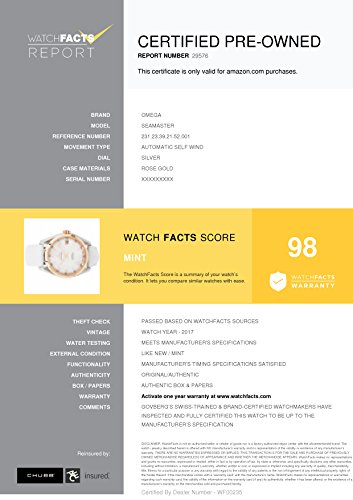 -. Feature : Omega Seamaster 231.23.39.21.52.001 with rose-gold bezel and silver dial / Authenticated by WatchFacts. Grade Rating: 98 / Condition: Mint / Comes with original box and manufacturer's papers offered with this watch / Automatic-self-wind movement / Watch year: 2017