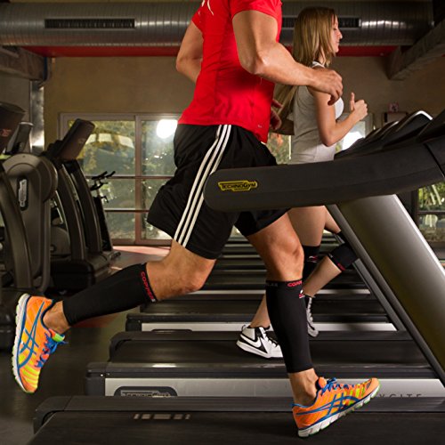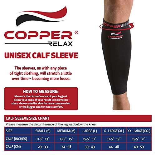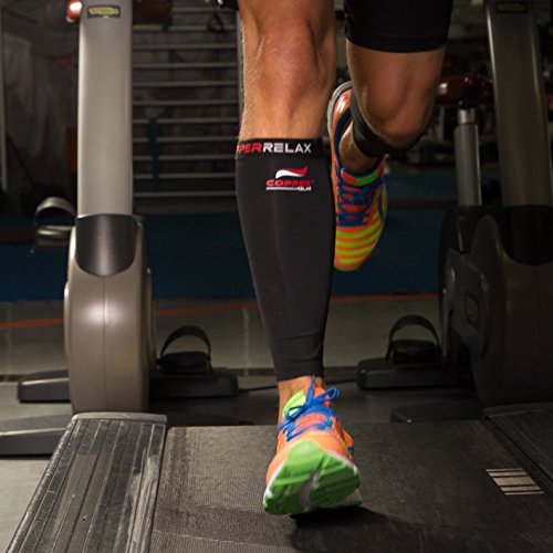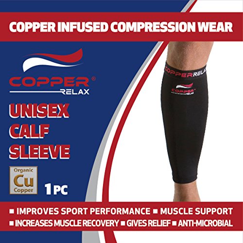 Copper Relax Calf Compression Sleeve - Best Original Non Slip Shin Splint Recovery Brace - Support Socks for Sore Muscles and Joints - Use Anywhere Anytime - For Men and Women - Single