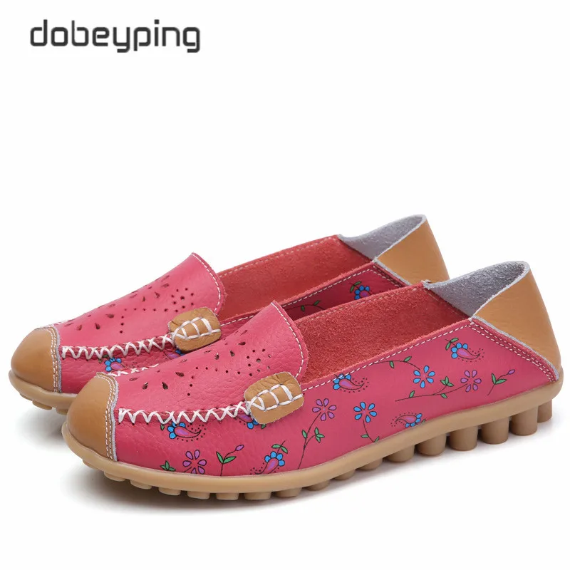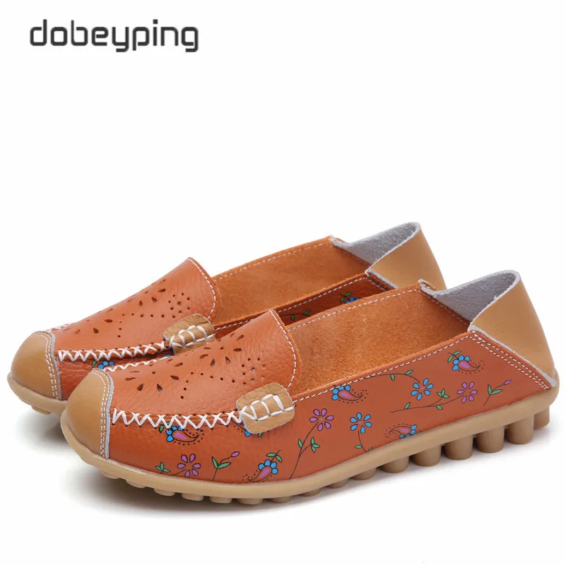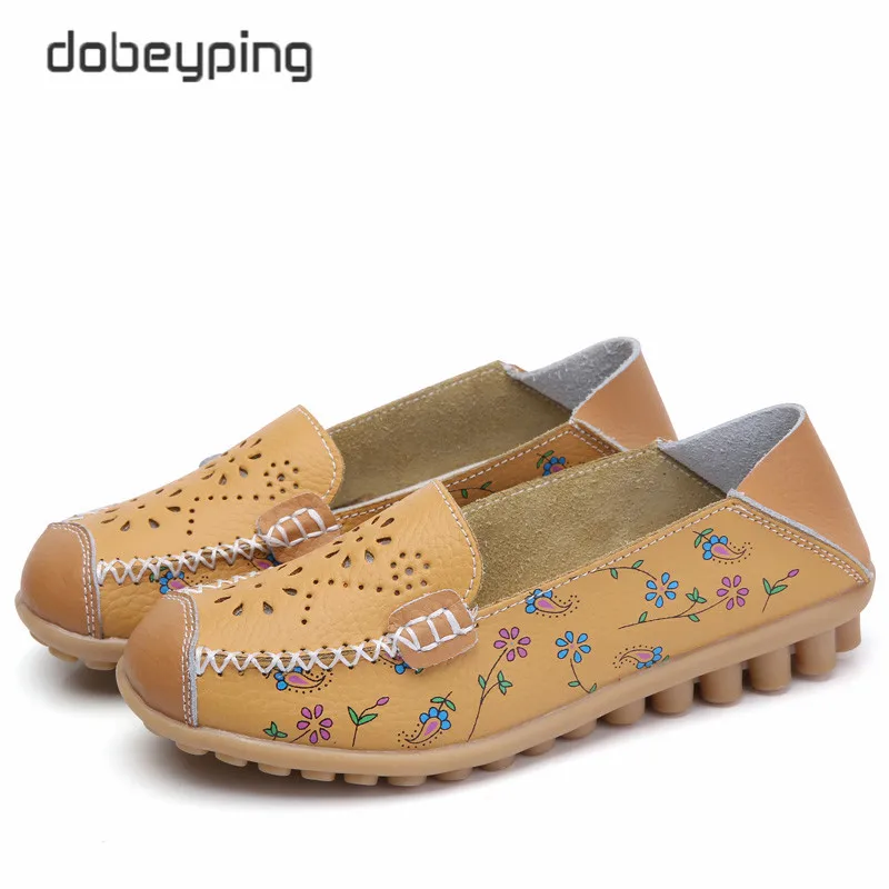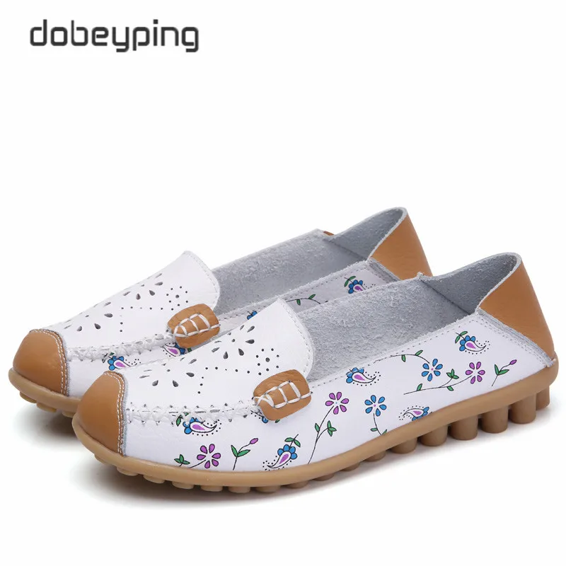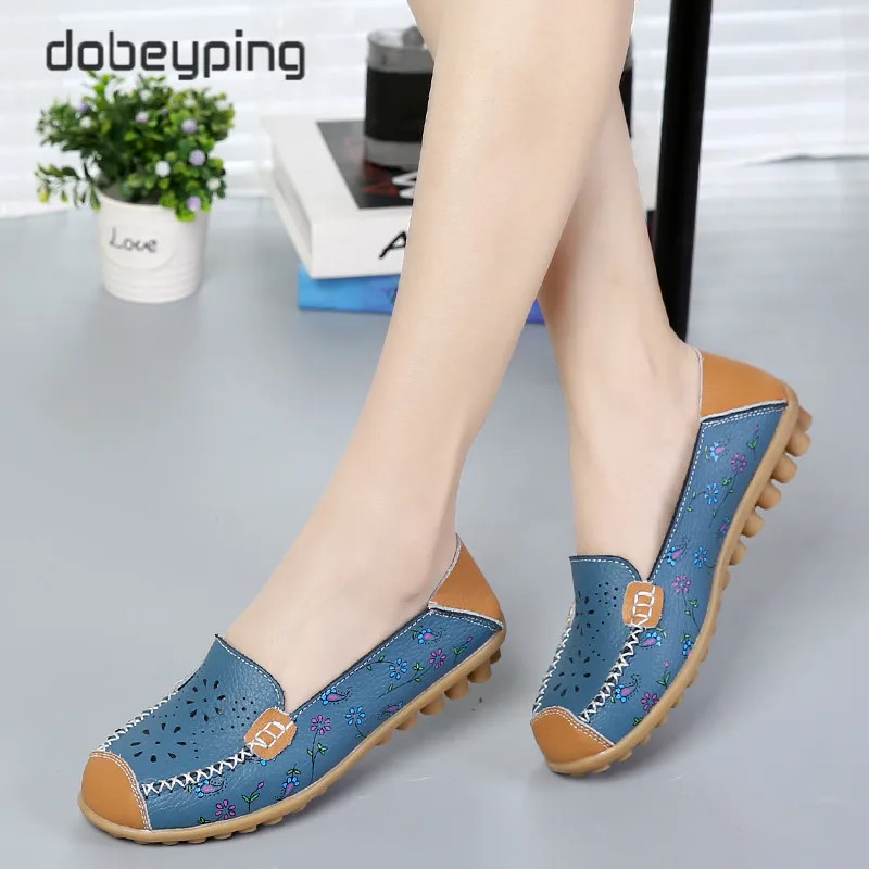 Leather Casual Shoes:Medium Width, Shallow, Summer Loafers, Cut-Outs, Peas Shoes, Flower
