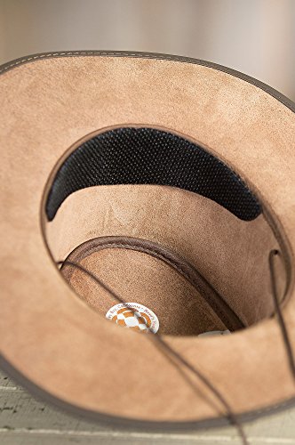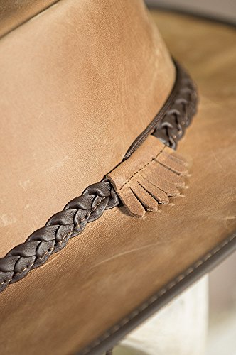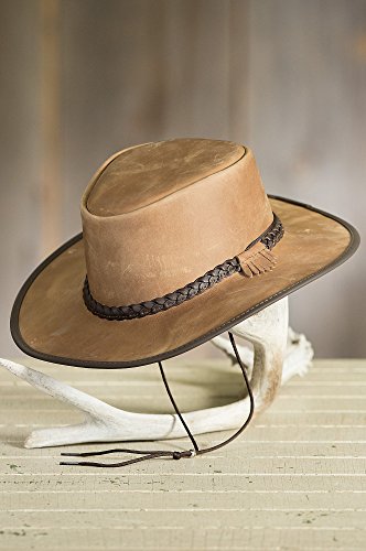 Studio : Overland Sheepskin Co. Publisher : Overland Sheepskin Co. Binding : Apparel Product Description Capture the "can do" spirit with our fine cowboy style hat. Whether you're riding or walking, or exploring the mesas or the mall, the oiled, finished-leather Bravo tops your outfit with Western class. Shape the brim to your taste, perfect the hat size with the adjustable Velcro sweatband, tighten the removable chinstrap cord, and you're good to go. From the teardrop crown to the suede interior to the leather braided band with matching rim-edge trim, the water-resistant Bravo is a classic. Genuine Cowhide Leather. Soft and crushable. Brim: 3". Handcrafted in the USA. 0