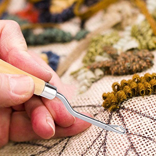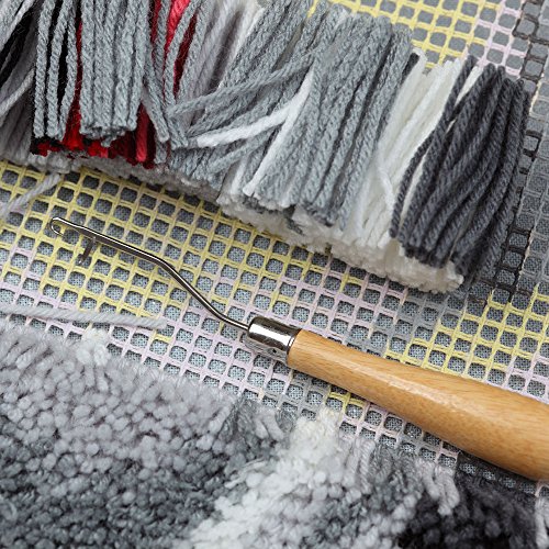 OPount 5 Pieces 5 Different Size Bent Latch Hook Crochet Needle Hook, 1 Pieces Wooden Bent Latch Hook and 4 Size Plastic Latch Hook, Set of 5