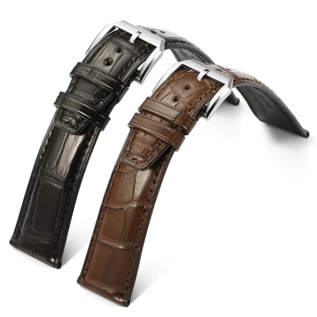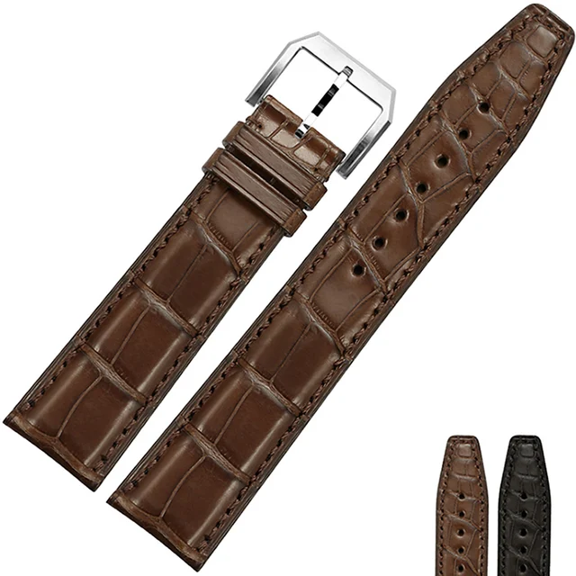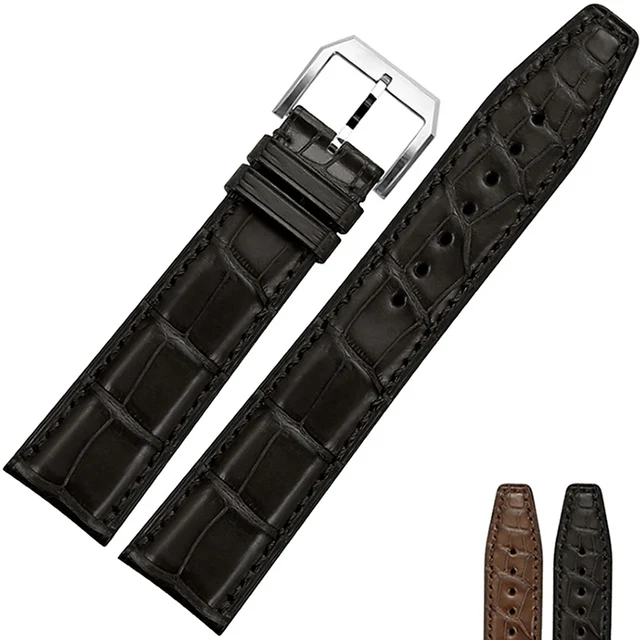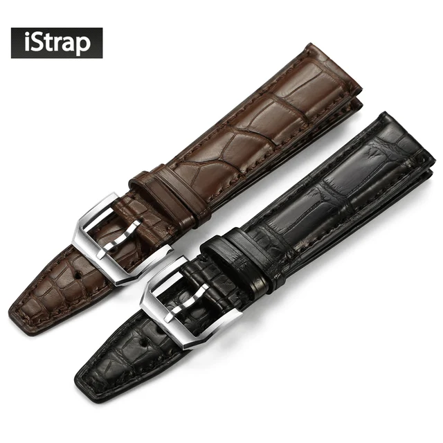 | [해외]Istrap 20 미리메터 21 미리메터 22 미리메터 블랙 브라운 높은 품질 손목 시계 악어 가죽 시계 스트랩 실버 핀 버클 시계 밴드 iwc |