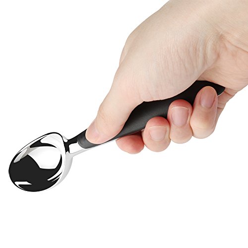 - Super comfortable handle- Soft rubber handle, make sure to hold firmly while scoop up. appropriate size and non-slip grip, Very ergonomic feel makes scooping ice cream a breeze.