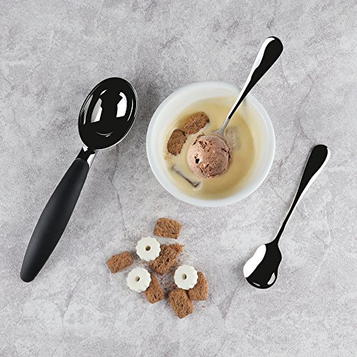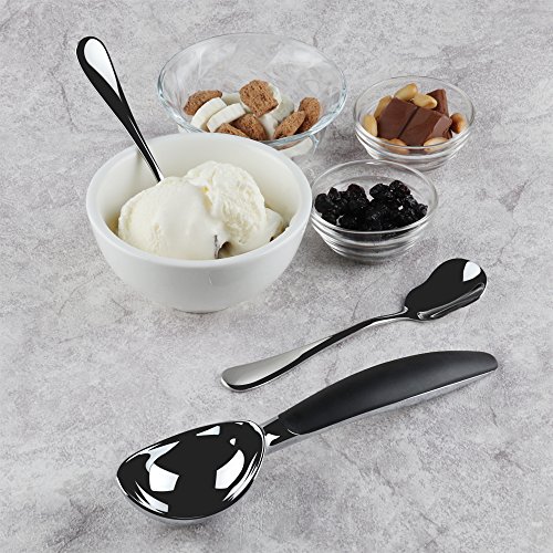 - Heavy duty ice cream scooper- superb quality, craftsmanship and durability! comfortable and easy to grip, will last a lifetime, The set also include two elegant spoons, let you enjoy dessert right away