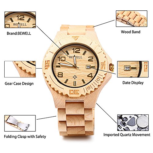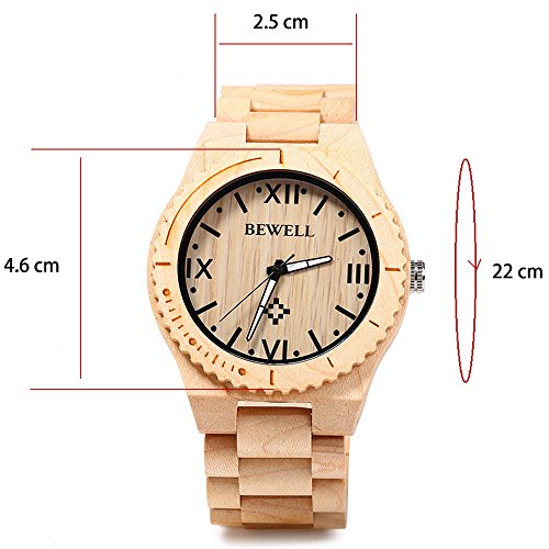 -. Feature : Adopt wood from nature, reflect the primitive ecology and consummate craft, and perfect combination of classic and fashion / Imported Japan 2035 movement, guarantees precise and punctual timing / Original Japan battery, the life of battery can be up to 36 months, no need to change battery frequently / Folding clasp with safety, easy to wear and not easy to fall off / Luminous pointers, you can read the time even in the dark condition