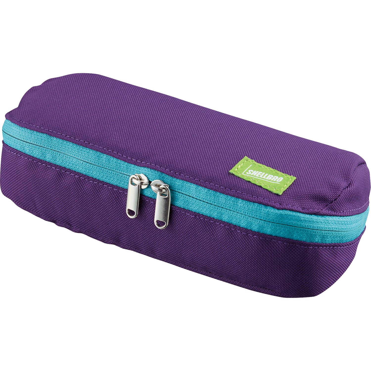 大容量で中身が見つけやすいシェル型ペンケース 【カラー】 パープル×エメラルドグリーン 【寸法】 200×100×55mm 【収容量】 ペン約35本(※ペンの種類により異なります) 【材質】 表材・内装:ポリエステル、芯材:ポリエチレン