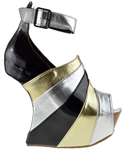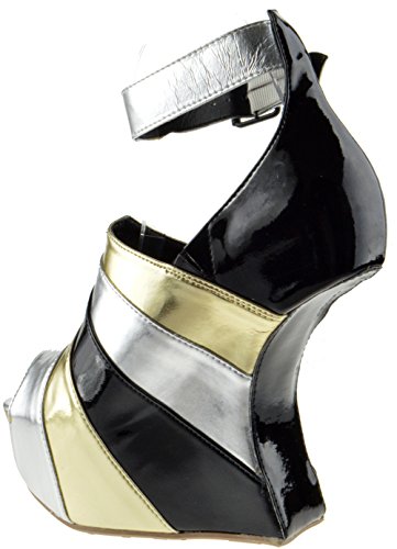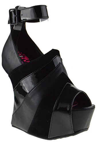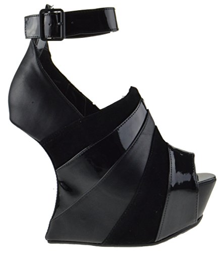 Binding : Apparel Product Description The style possibilities are endless with these fabulous heel less wedges. Features multilayer faux suede and patent leatherette design upper, stitching details, peep toe front, hidden platform, and unique curved wedge heel. Finished with cushioned insole and adjustable ankle strap with buckle closure. 0