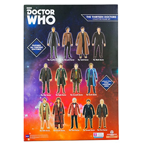 Studio : Underground Toys Publisher : Underground Toys Binding : Toy Product Description Doctor Who SDCC 2016 Exclusive - The 13 Doctors Collector Figure Set - When on display your friends will see this limited edition SDCC 2016 collector's set and ask if it includes all 12 Doctors, and you'll say, "No sir...all thirteen!" Each figure measures 5.5 inches and features new or alternate costumes such as the 8th Doctor from "The Night of the Doctor", the War Doctor from "The Day of the Doctor", the 6th Doctor from Big Finish audio adventures, and the 12th Doctor from his premiere episode. This limited edition set originally available at San Diego Comic Con comes individually numbered and is a very welcome addition to any Whovian's collection! 0