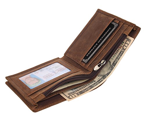 -. Feature : Made of Top Layer Crazy Horse Cowhide Leather,Hand Made By Professional Artisans / Dimension:4.2(L)*3.6(H)inch / 11(L)*9.4(H)cm / 3*Card Slots, 1*Window ID, 1*Zipper pocket, 2*Money Pocket / 100% Brand New & Top Quality,Vintage look / Nice Look and Durable Wallet, Good gift for men