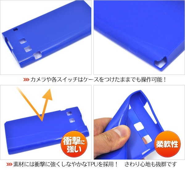 ポップなカラーに美しい光沢感を備えた、ソフトケースです。