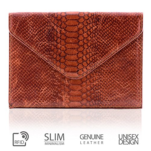 -. Feature : Ultra-Slim, Trendy Design - A wonderful replacement for a large purse or small wallet, the clutch offers more versatility and convenience for on-the-go use. / Advanced RFID Protection - Along with a modern look, this women's clutch blocks RFID signals so thieves can't remotely steel personal or financial information. / Magnetic Front Closure - Fitted with a snap-tight magnetic front, this hooded clutch properly secures the four card slots and interior pocket for improved travel use. / Premium Italian Leather - This hooded clutch is crafted with genuine cowhide Italian leather (except for the snake pattern) for a premier look and texture. / Beautiful Styles and Variations - Each Italian leather women's clutch comes in a wide range of patterns and contemporary colors like smoked, green, snake and more.