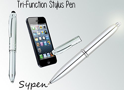 Tri-Functiion Capacitive Stylus Ballpoint Pen w/ LED Flashlight for Any Touchscreen Iphone Tablets - Silver