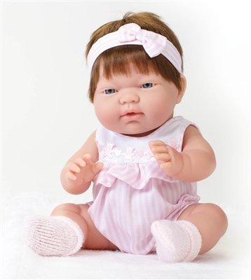 18380 Features: -Doll. -Blue eyes, brown hair and light pink outfit. -Perfect for anyone ages 2+. -13" H, 2 lbs. Product Type: -Baby Dolls. Age Range: -2 To 4 Years. Material: -Plastic. Interest: -Fantasy/Nuturing. Ethnicity: -Caucasian. Hair Color: -Brown. Eye Color: -Blue. Gender: -Female. Dimensions: Overall Product Weight: -2 Pounds.Feature