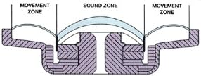ダイアフラムを、超低域から超高域まで再生する「サウンドゾーン」と、サウンドゾーンを囲んでその動きを支える「ムーブメントゾーン」の2つの部分によって構成し、それぞれの厚みを最適化する事で、ダイアフラムのよりスムーズな動作を実現。