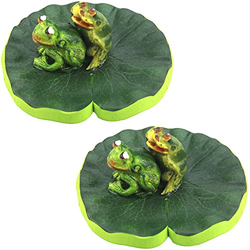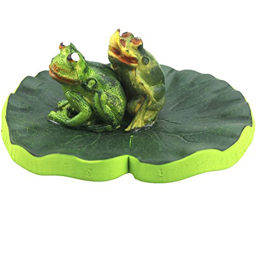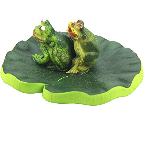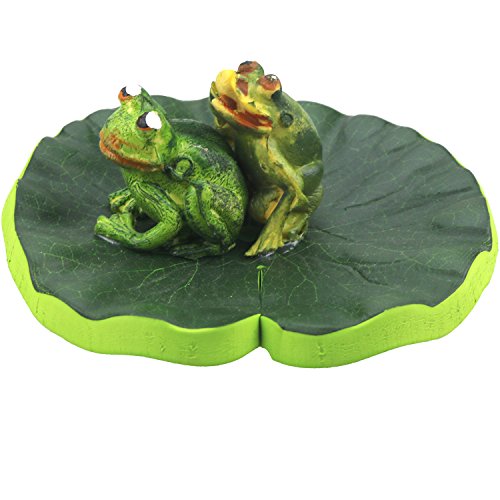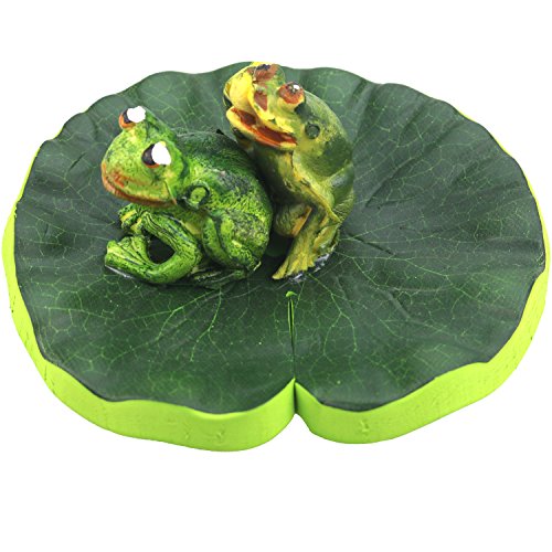 Lightingsky Artificial Floating Foam frog Stand on Lotus Leaf Pond Decro (20cm, 2 Double Frogs)
